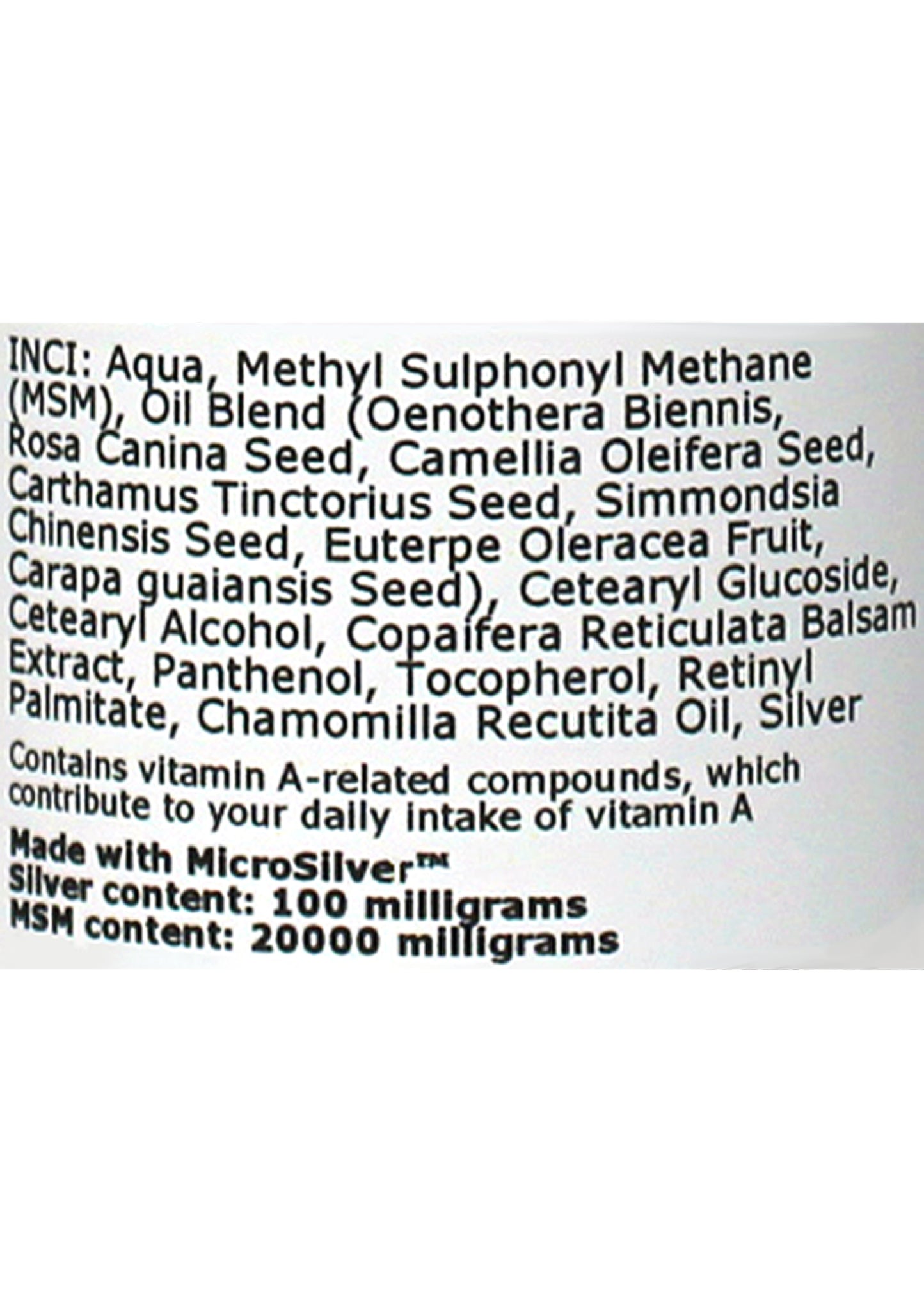 - Combines the powerful anti-microbial properties of MicroSilverTM, which helps to combat inflammation, with MSM (organic sulphur), a key nutrient which promotes healthy skin function